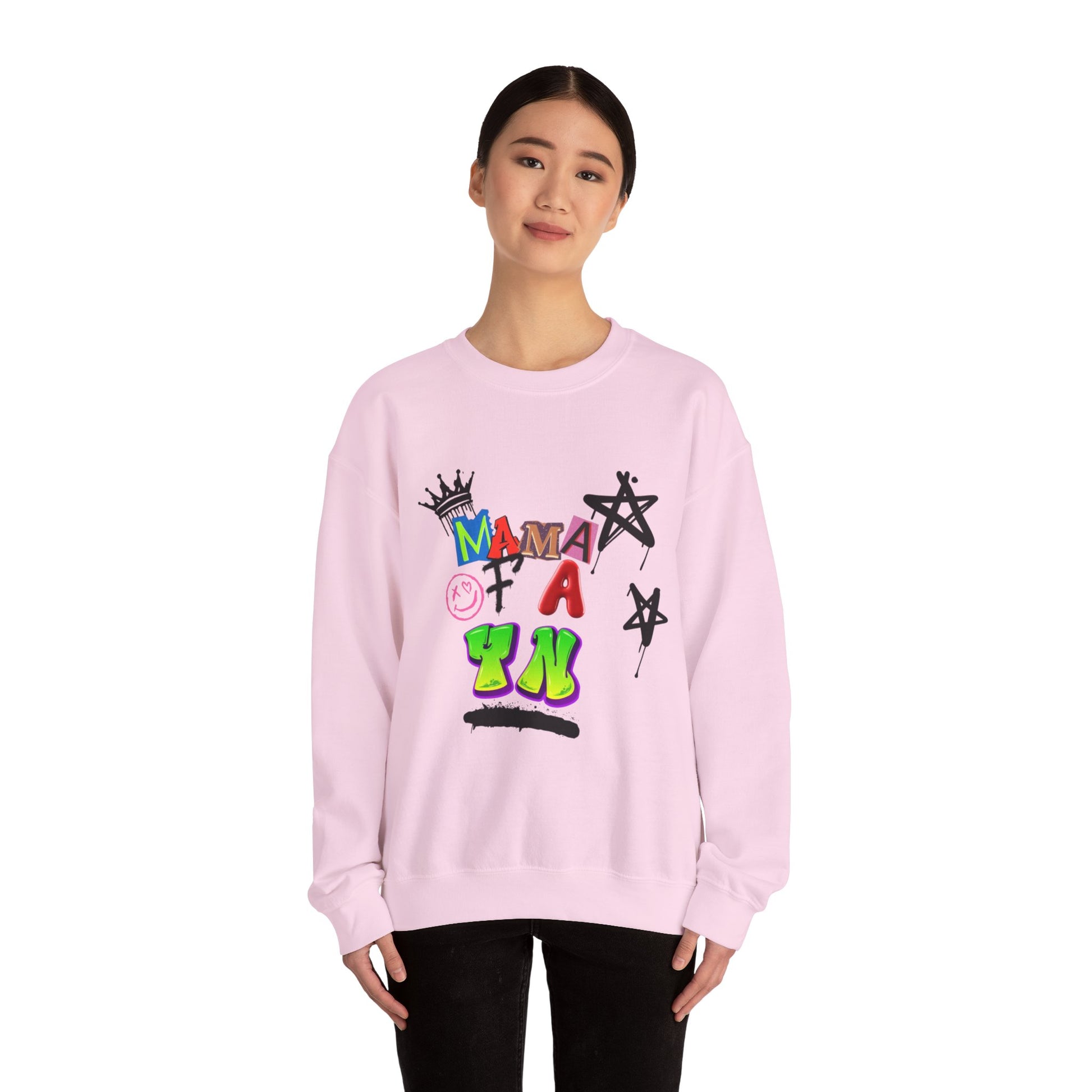 are you a mama of a yn?? haha then this year wear it proudly and fashionably! Ideal for any situation, a unisex heavy blend crewneck sweatshirt is pure comfort. These garments are made from polyester and cotton. This combination helps designs come out looking fresh and beautiful. The collar is ribbed knit, so it retains its shape even after washing. There are no itchy side seams on these sweaters.